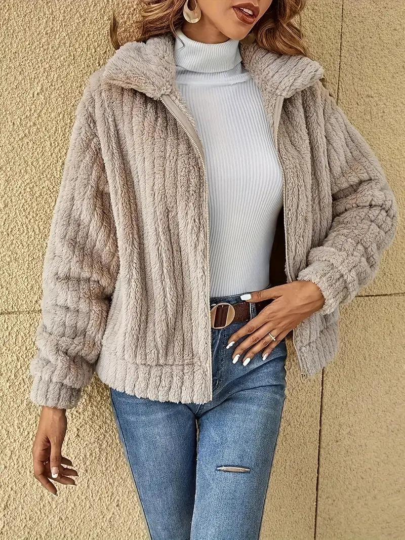 Every detail, from the refined plush texture to the functional pockets, is designed with your ultimate comfort and style in mind. Let Rhonda be your cozy companion through the colder months, exuding casual sophistication.