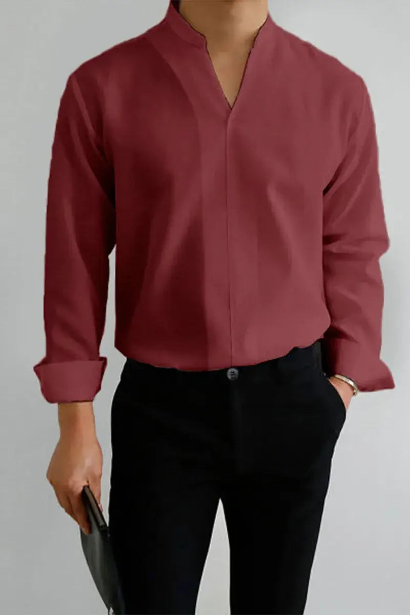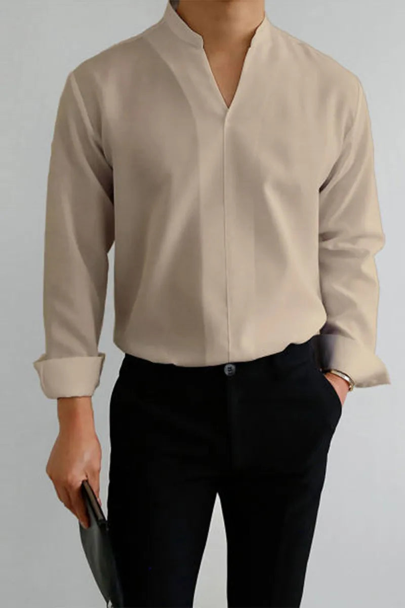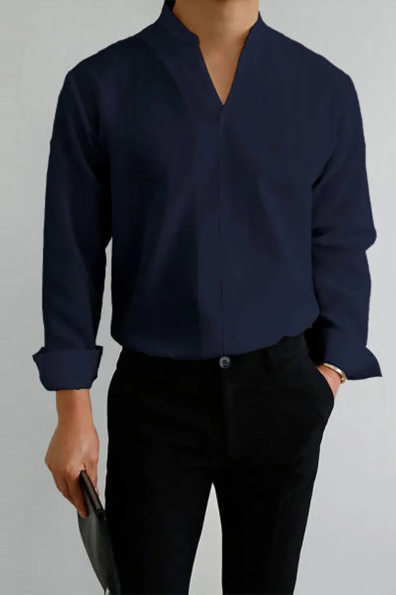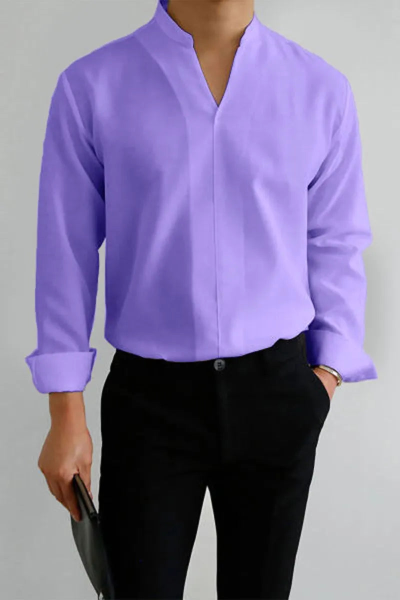 Comfortable Simple Casual Shirt is perfect for any occasion. This lightweight and loose fit shirt is made from a comfortable and breathable fabric, keeping you cool and comfortable all day. The classic mandarin collar and single-button turnback cuffs give this shirt a timeless style that will never go out of fashion. A must-have for any men's wardrobe, this shirt will take you from the office to the lounge with effortless style.