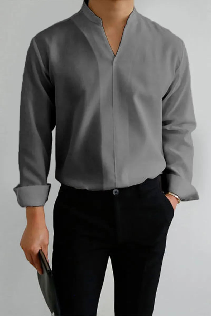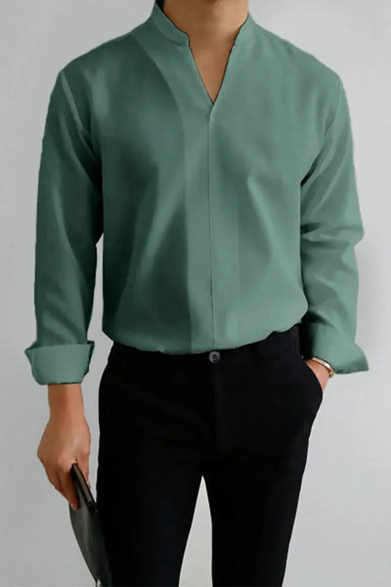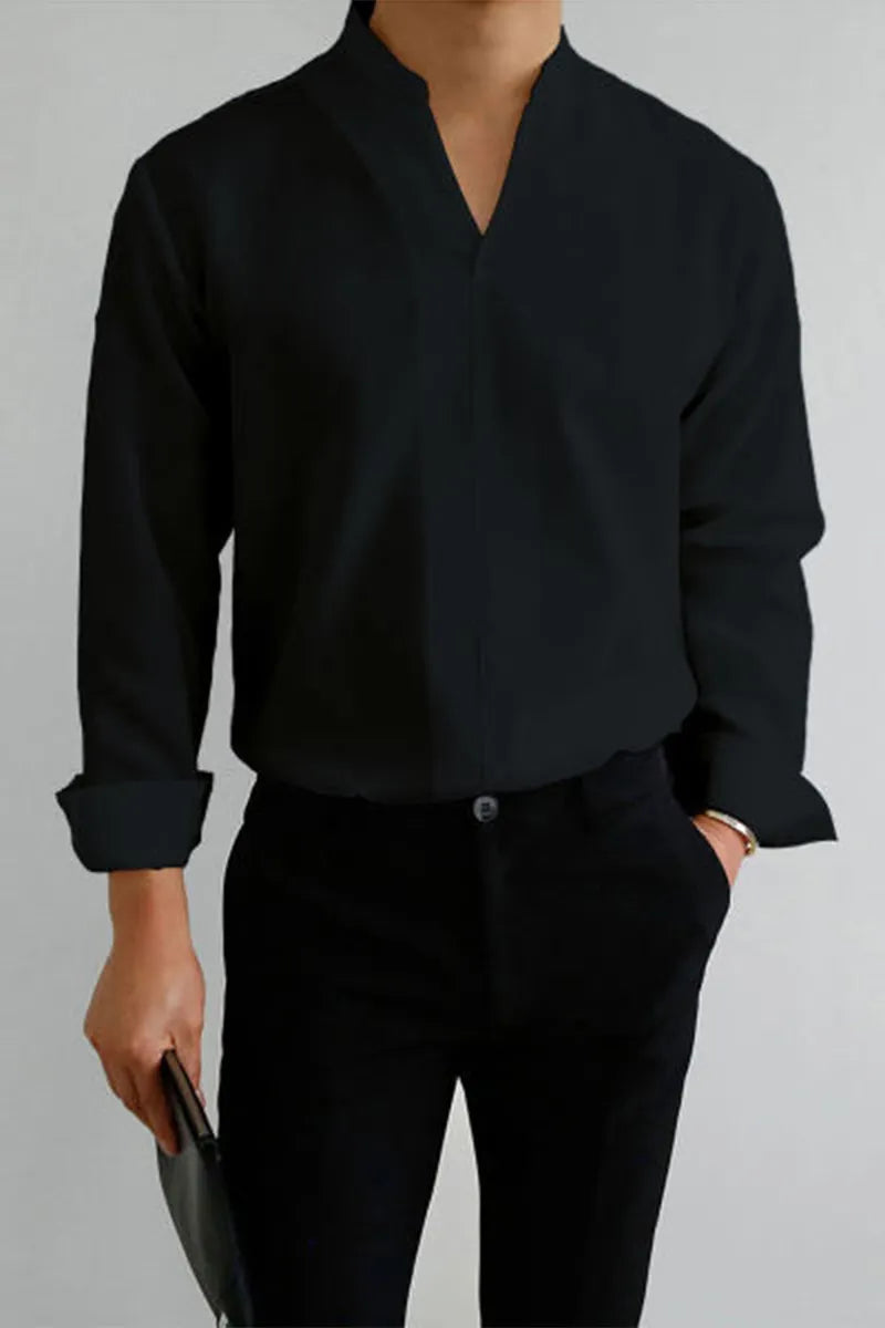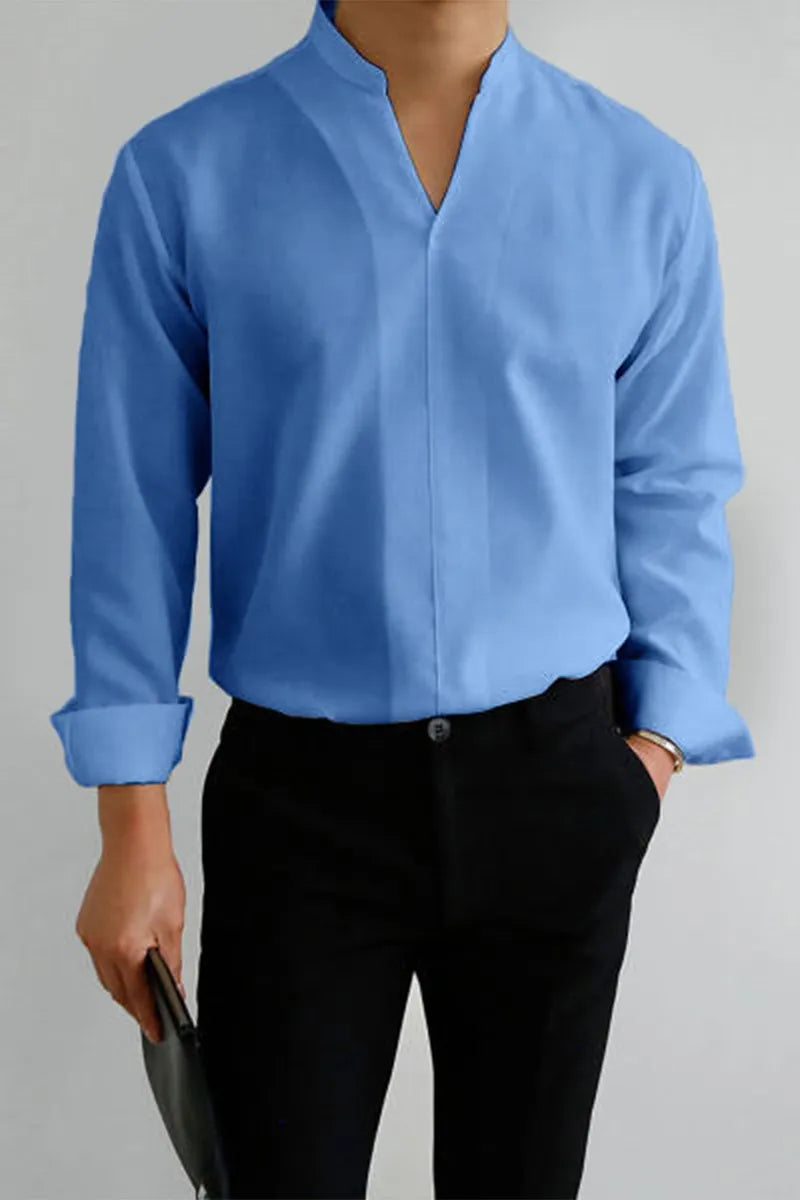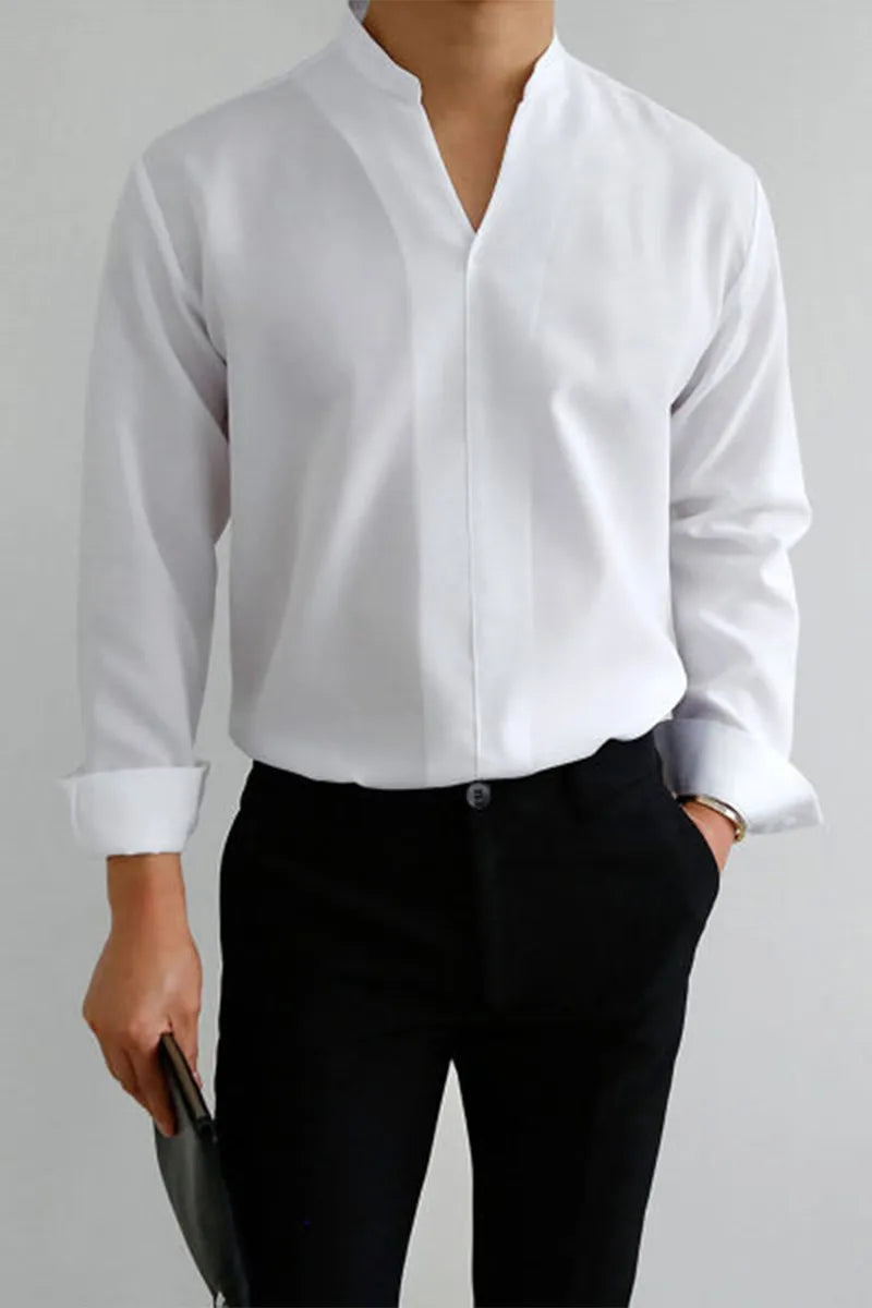 Comfortable Simple Casual Shirt is perfect for any occasion. This lightweight and loose fit shirt is made from a comfortable and breathable fabric, keeping you cool and comfortable all day. The classic mandarin collar and single-button turnback cuffs give this shirt a timeless style that will never go out of fashion. A must-have for any men's wardrobe, this shirt will take you from the office to the lounge with effortless style.