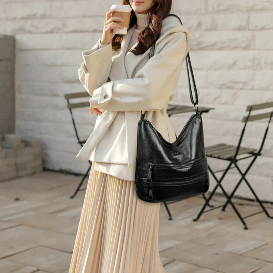 Aaliyah - Double Zipper Leather Shoulder Bag