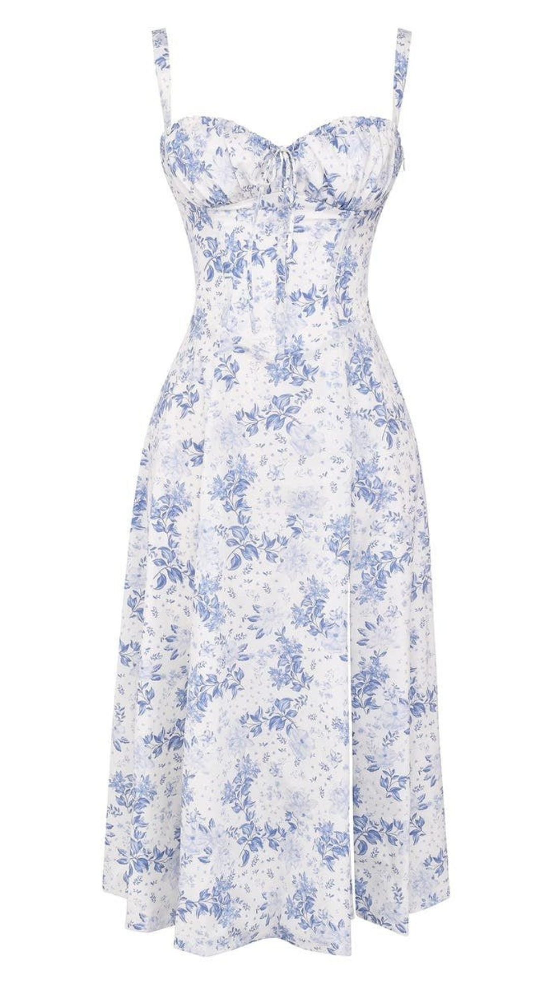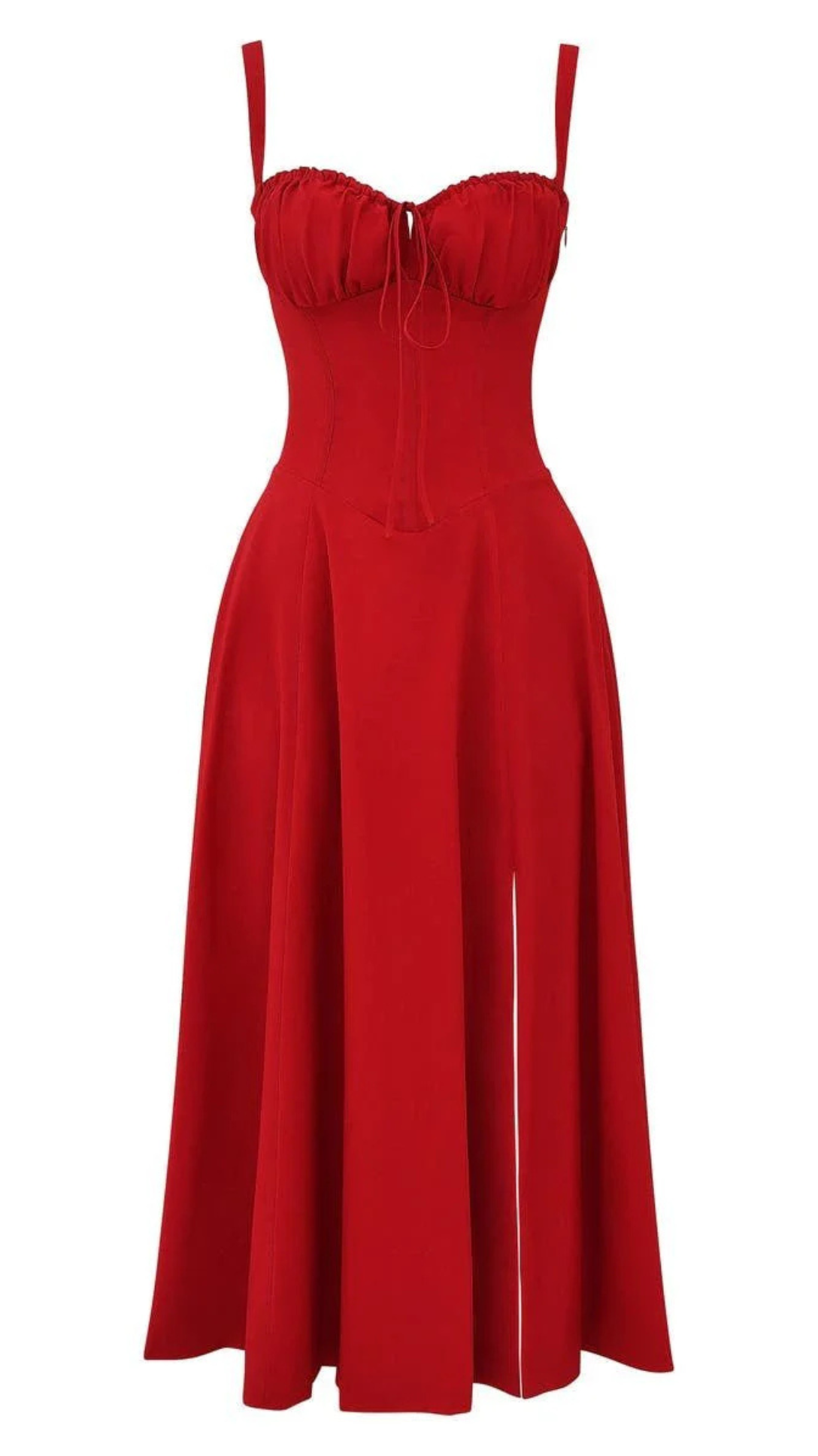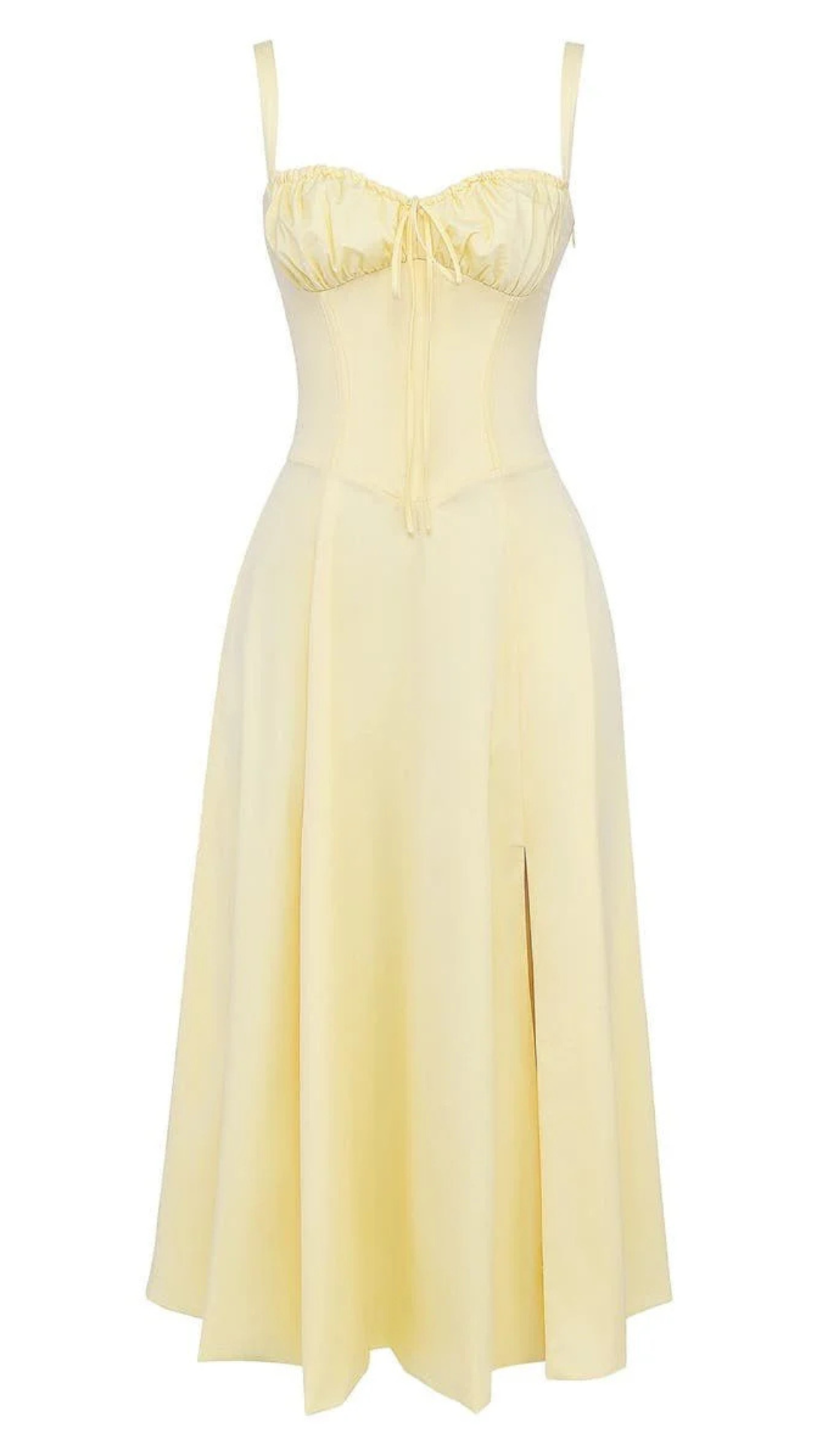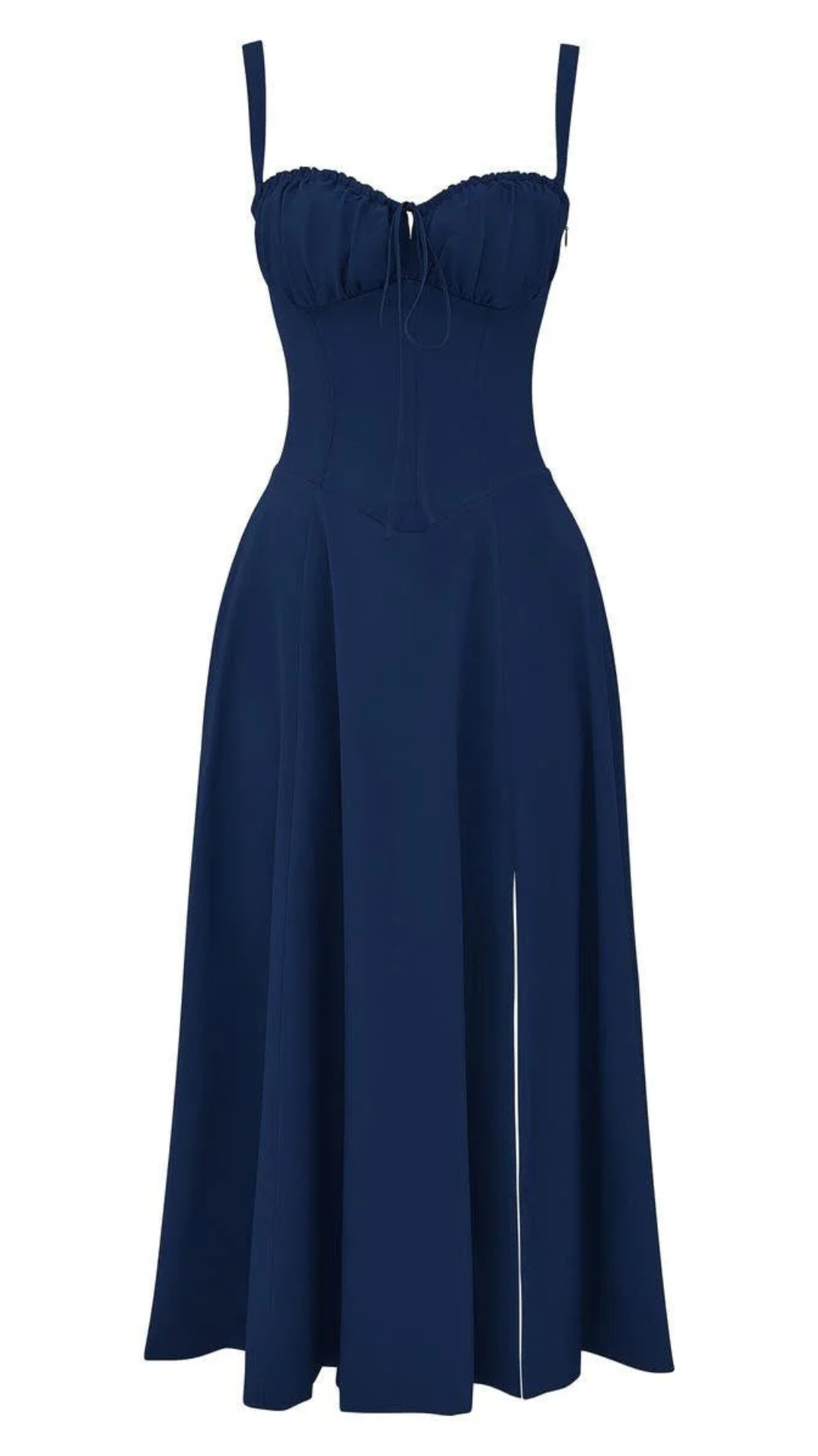 Elegant bustier design: A beautiful bow at the back, lacing at the bust, and a sensual side slit that accentuates your legs.